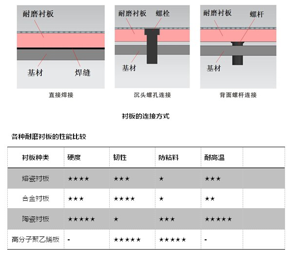 熔瓷襯板所有產(chǎn)品均可焊接,現(xiàn)場切割比較困難,不建議切割!安裝方式可采用: ①直接焊接②沉孔預(yù)制